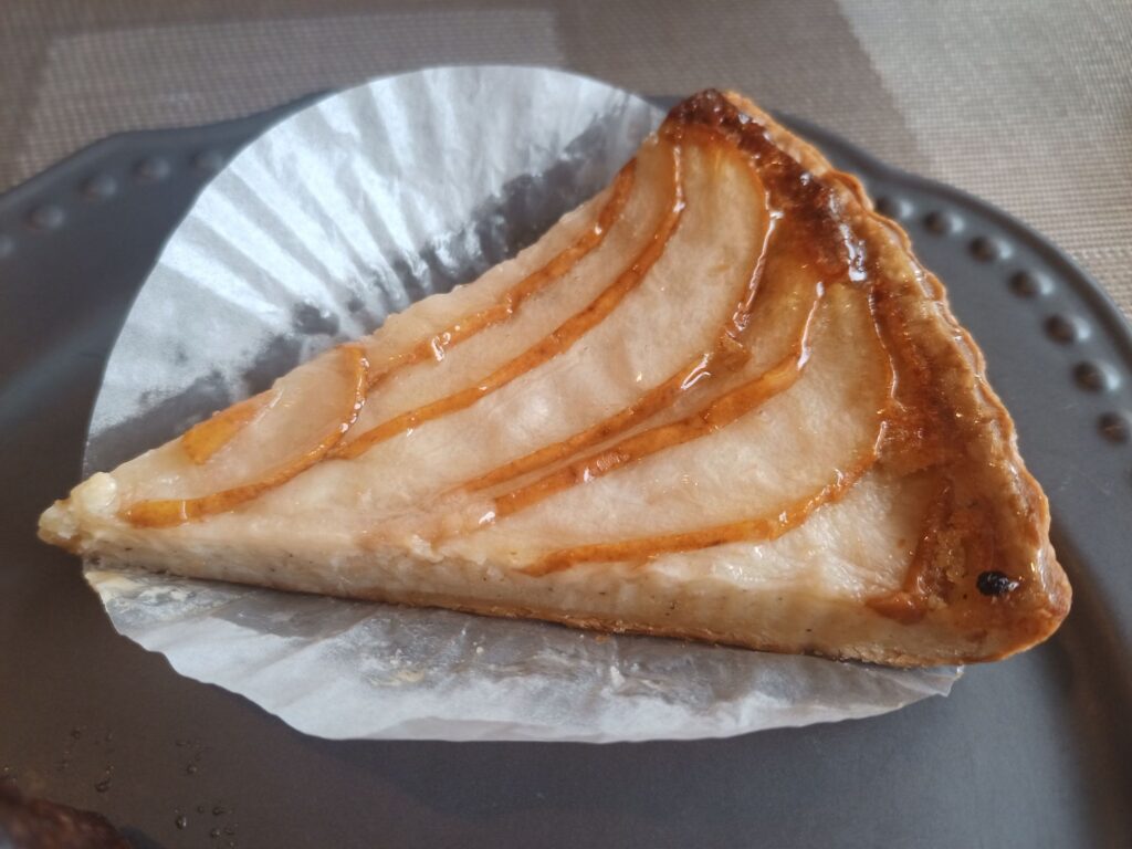 すごくしっとり!アーモンドプードルが効いた生地はじわっとしっとり、タルトもしっかり、底面はパイのようで香ばしい。甘さのバランスも良き!