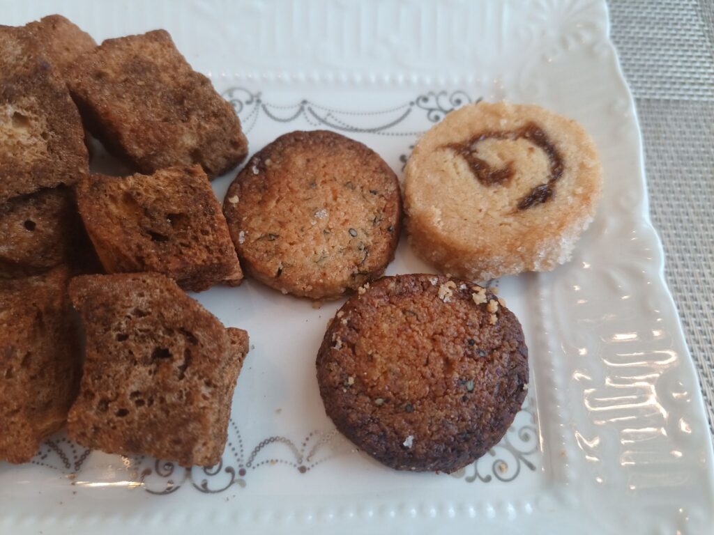表面に胡麻があるクッキーは大葉みそクッキー。程よい塩味のある味噌の風味が甘じょっぱいけど、甘みもしっかりある。