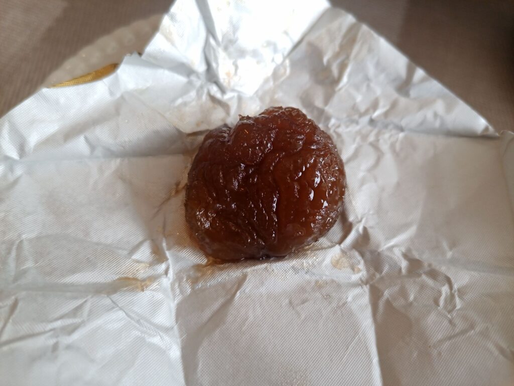 とてもし〜っとりやわらかな栗の食感、お酒の風味はなくとてもシンプルな風味。バニラもそんなに効いてないかな?