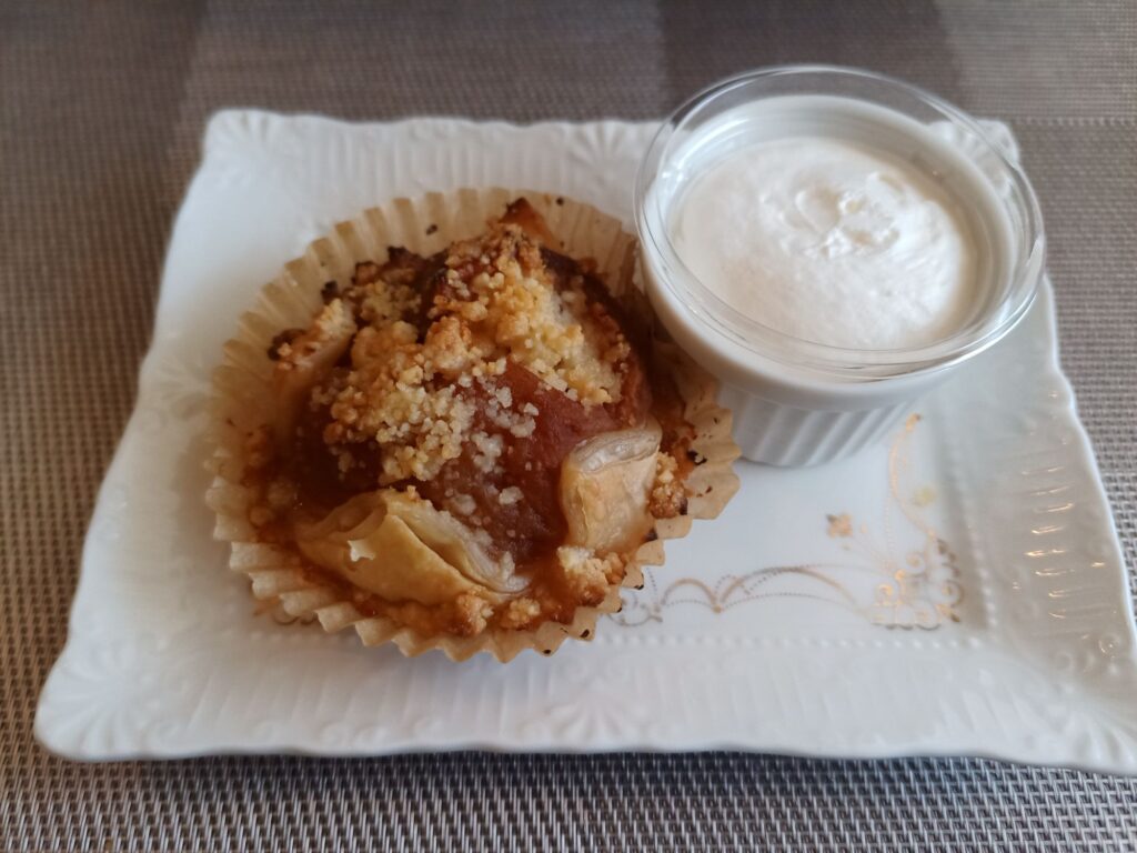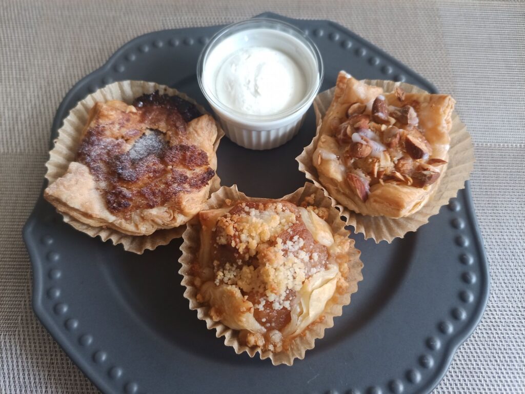 パリッとした香ばしいパイとフレッシュな生クリームを一緒にいただくことで、しっとり感とミルキーさが加わって良き!