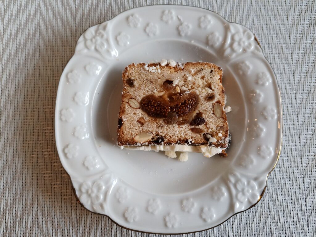1枚目は頑張って5mm位にスライスしたのですが、ナッツやフルーツがゴロゴロ入っていて(歓喜)早々に諦めて厚めにカット。