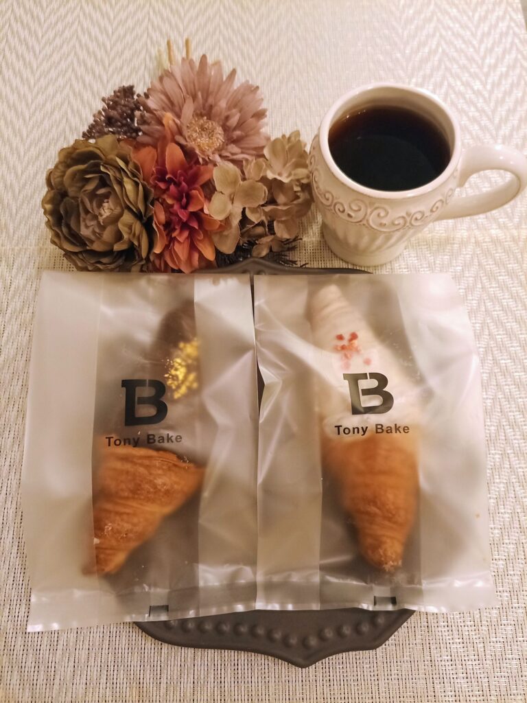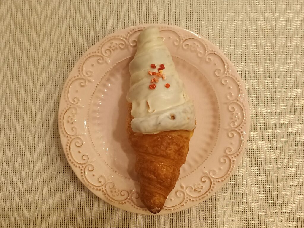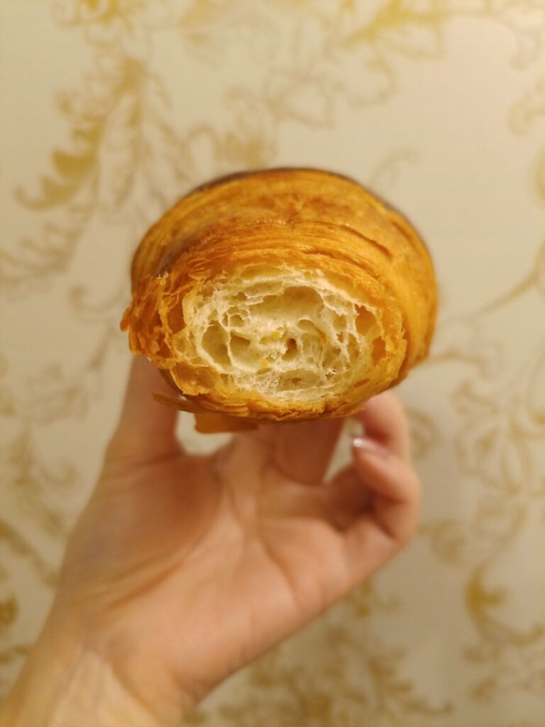 クロワッサンは甘さ控えめでふんわり、中の生地層もしっかり詰まっていてしっとり。