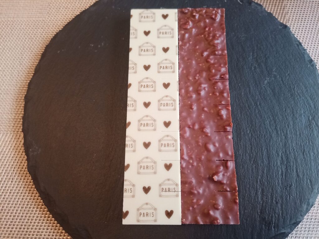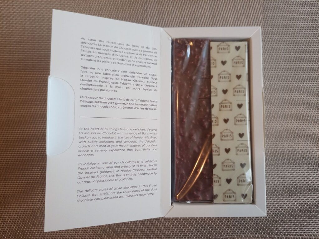 表と裏がどちらも見えるようになっていて、ホワイトチョコレートにプリントされたハートとPARISの柄も可愛い!