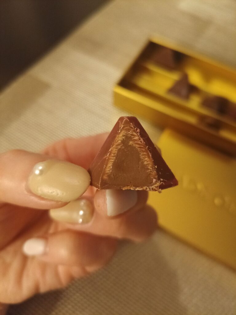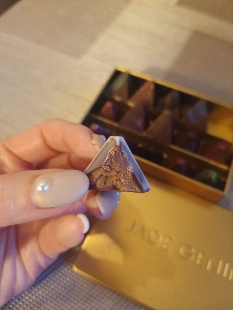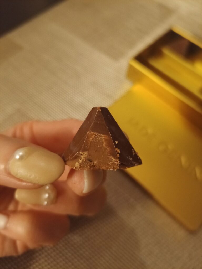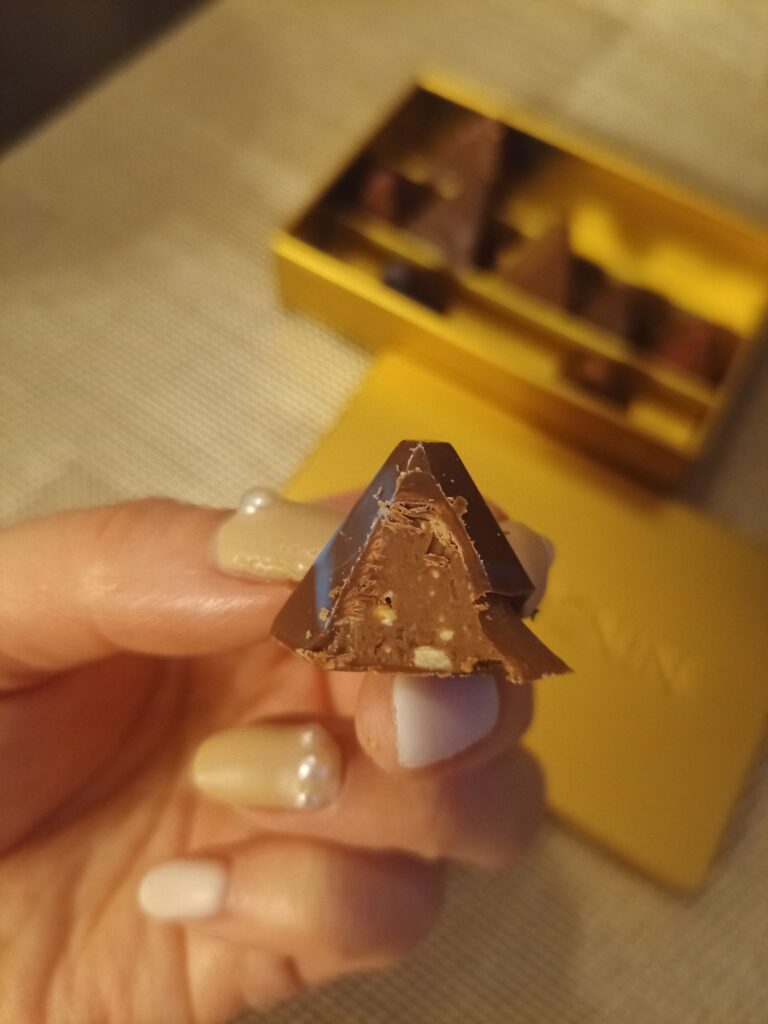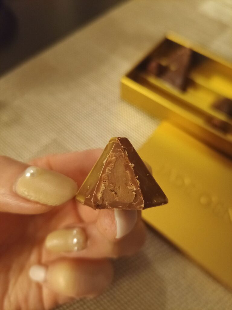 濃厚でまろやかで口溶けも最高、ジャンドゥーヤ最高。こちらもフィヤンティーヌ入りかしら、濃厚でまろやかな中にカリカリ食感。好き!