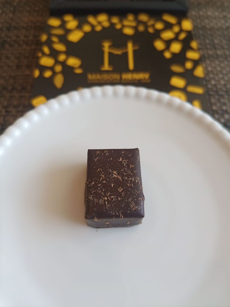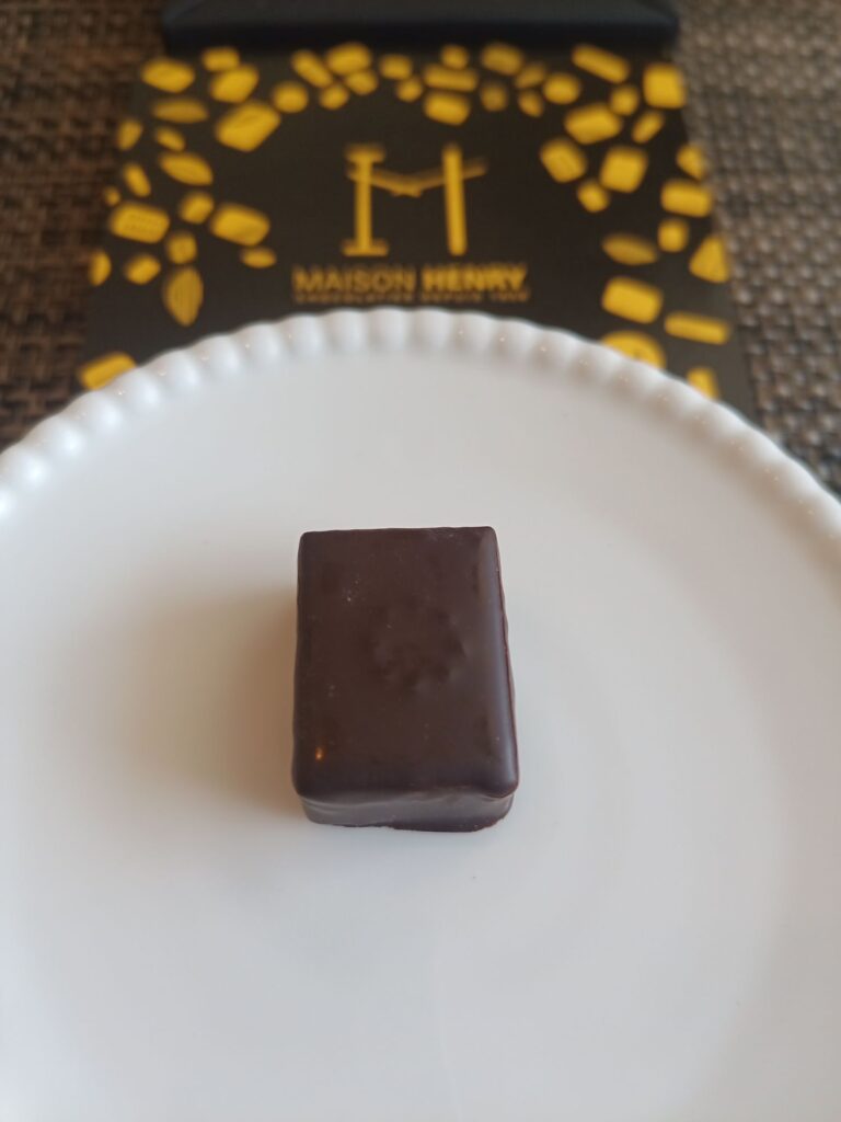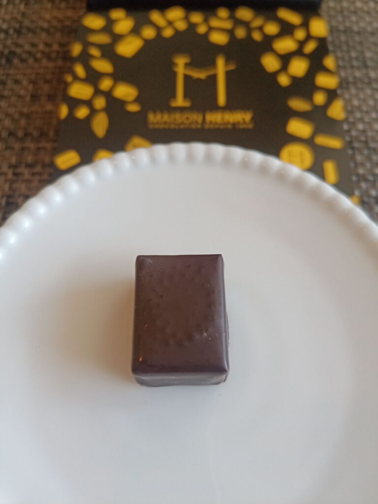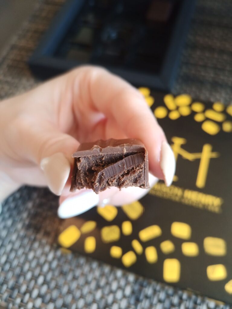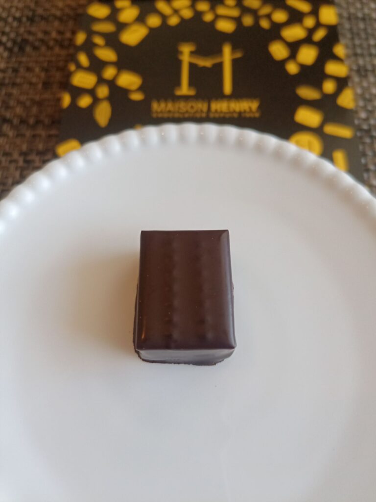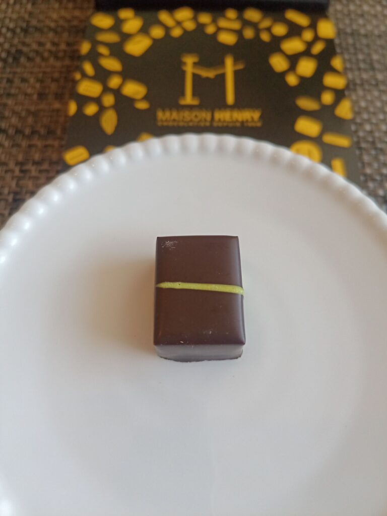 さっきの軽いガナッシュと全然違う!粘り気のあるくらいにニト〜としたガナッシュで、ライムとミントのフレーバーがすごい!特にライム!ライムの爽やかで良い香りと風味の後にミントが追い風のように吹いてくるガナッシュ。好き。