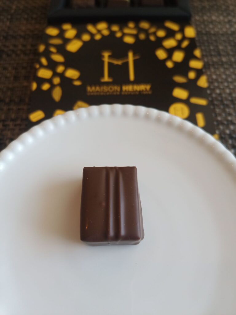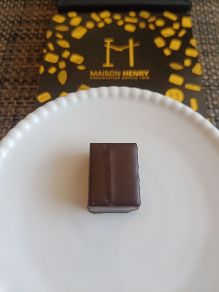 洋ナシのようなフルーティさもありつつ、コクと苦みの効いたビターチョコレートだけど、甘みも結構強め。どことなくお酒っぽさの感じる。