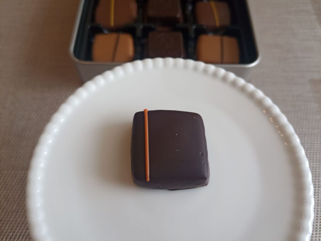 オレンジフレーバーもしっかり広がって、コーティングのビターチョコレートも薄めながら濃厚なビター。