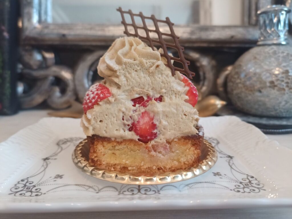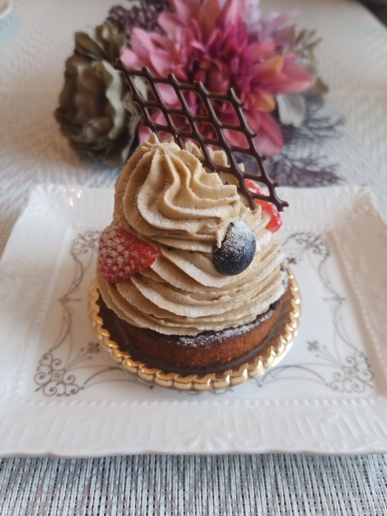 トップにあるキャラメリゼされた薄いアーモンドがまた香ばしい。