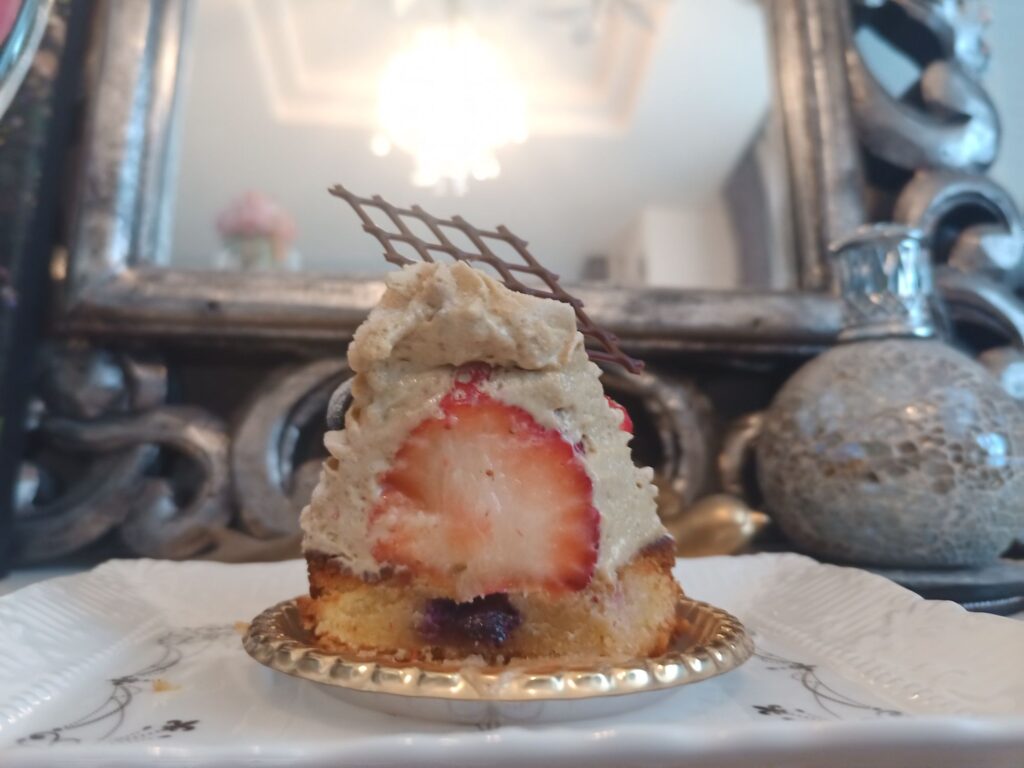 鮮やかグリーンじゃなくて、この渋いピスタチオ色のクリームが良き!いちごもジューシーで甘みがあってとても美味しい!
